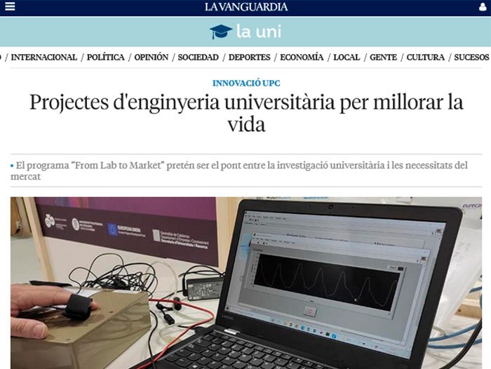 Amb aquest títol 'Projectes d'enginyeria universitària per millorar la vida', la secció La Uni del diari La Vanguardia publica una notícia sobre el programa From Lab to Market. una iniciativa del que té com a objectiu principal fer de pont entre la investigació universitària i les necessitats del mercat, des del punt de vista centrat en la identificació i la transferència de tecnologies d'avantguarda. Tot ell amb l'objectiu de generar valor social i econòmic.